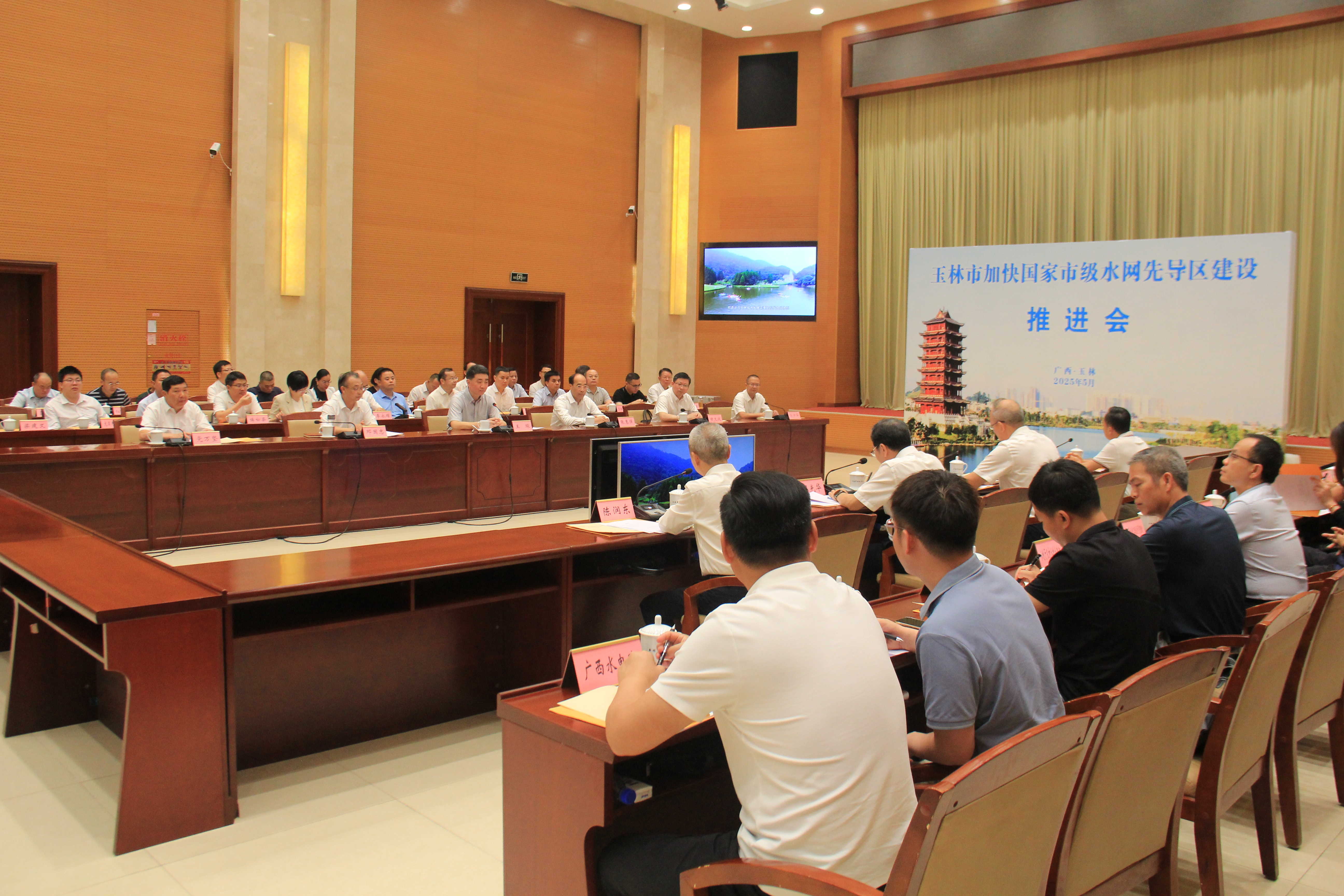 5月15日,玉林市加快国家市级水网先导区建设推进会召开,深入贯彻落实习近平总书记关于治水的重要论述,贯彻落实中央、自治区关于水网建设的决策部署,共商玉林水网建设大计,共绘玉林水利发展蓝图。水利部珠江委二级巡视员李亮新,自治区水利厅党组书记周光华、厅长邓长球,市委书记王琛、市长张惠强出席会议。
