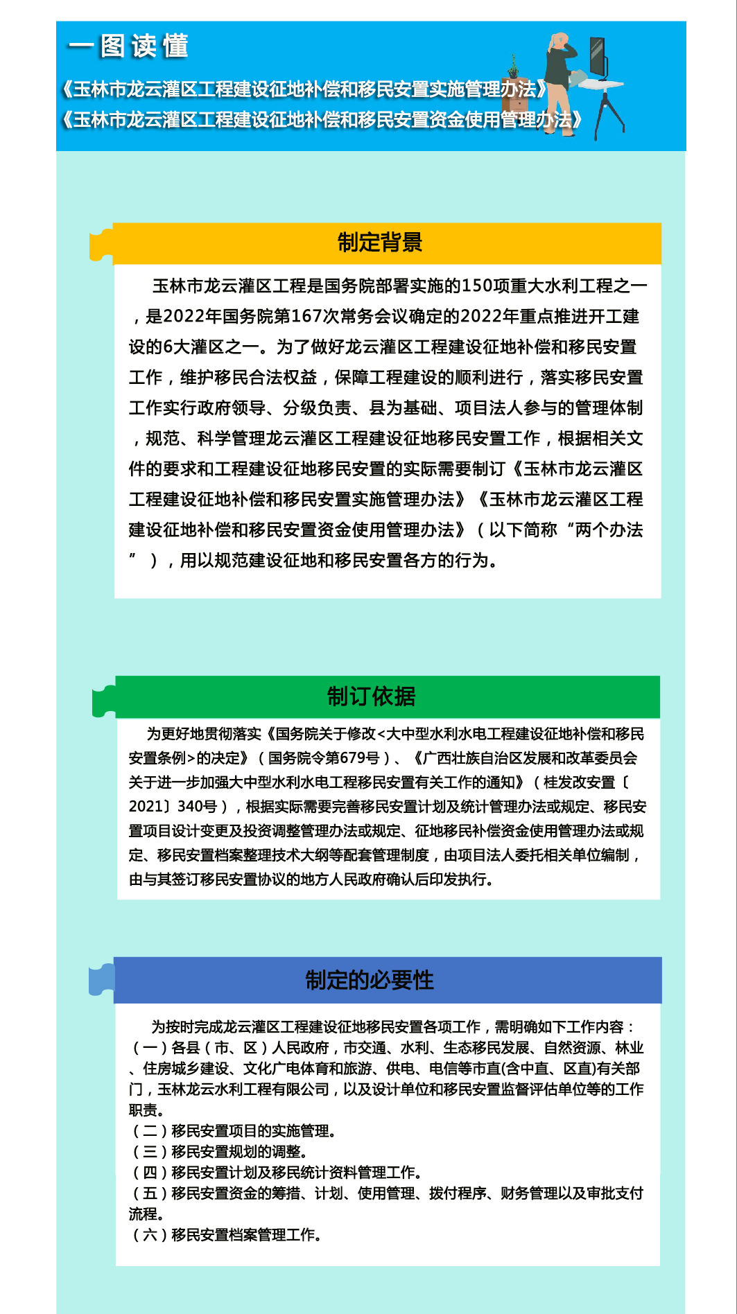 图解:《玉林市龙云灌区工程建设征地补偿和移民安置实施管理办法》《玉林市龙云灌区工程建设征地补偿和移民安置资金使用管理办法》